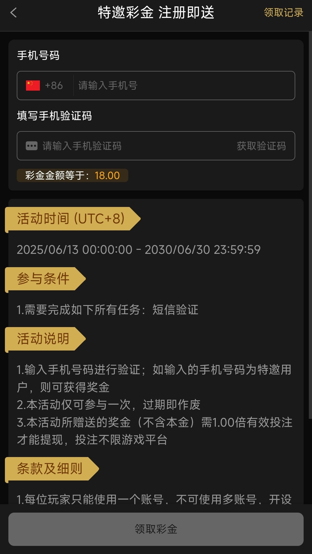 电话特邀碰瓷注册后联系客服需要截图通话记录,随便截图一张即可,查手机号,不在名单可以试试在优惠里自助领取看是不是特邀,联系客服是38彩金,优惠里的是18彩金一倍流水
