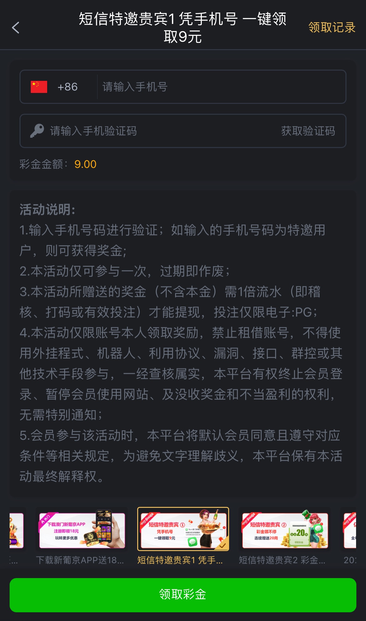感兴趣的兄弟可以去试试,注册好在优惠里自助领取彩金,仅限:PG电子
